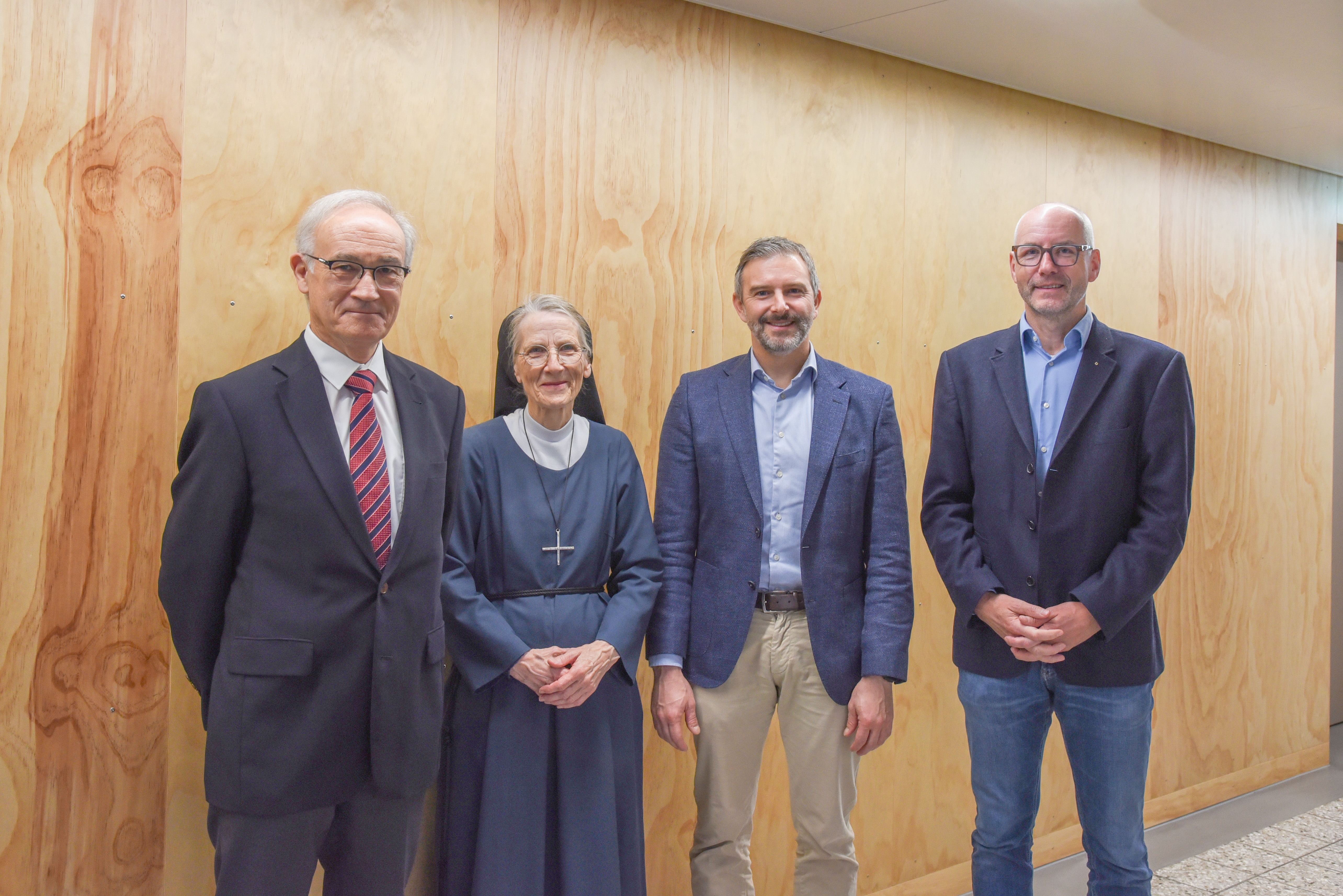 Bildlegende: (v.l.n.r.) Hans Rudolf Ziegler (Präsident des Stiftungsrates St. Antonius- Stiftung), Sr. Marie-Ruth Ziegler (Vizepräsidentin des Stiftungsrates St. Antonius- Stiftung), Markus Kern (Mitglied Stiftungsrat BSZ Stiftung), Franz-Xaver Strüby (Präsident des Stiftungsrates BSZ Stiftung).